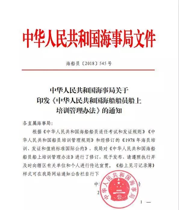 各直屬海事局: 根據(jù)《中華人民共和國海船船員適任考試和發(fā)證規(guī)則》《中華人民共和國船員培訓(xùn)管理規(guī)則》和經(jīng)修訂的《1978 年海員培訓(xùn)、發(fā)證和值班標(biāo)準(zhǔn)國際公約》,我局對《中華人民共和國海船船員船上培訓(xùn)管理辦法》進(jìn)行了修訂,現(xiàn)予發(fā)布,請遵照執(zhí)行并及時向轄區(qū)有關(guān)單位和個人進(jìn)行傳達(dá)宣貫。《船上見習(xí)記錄簿》樣式可在我局網(wǎng)站通知公告欄自行下載。